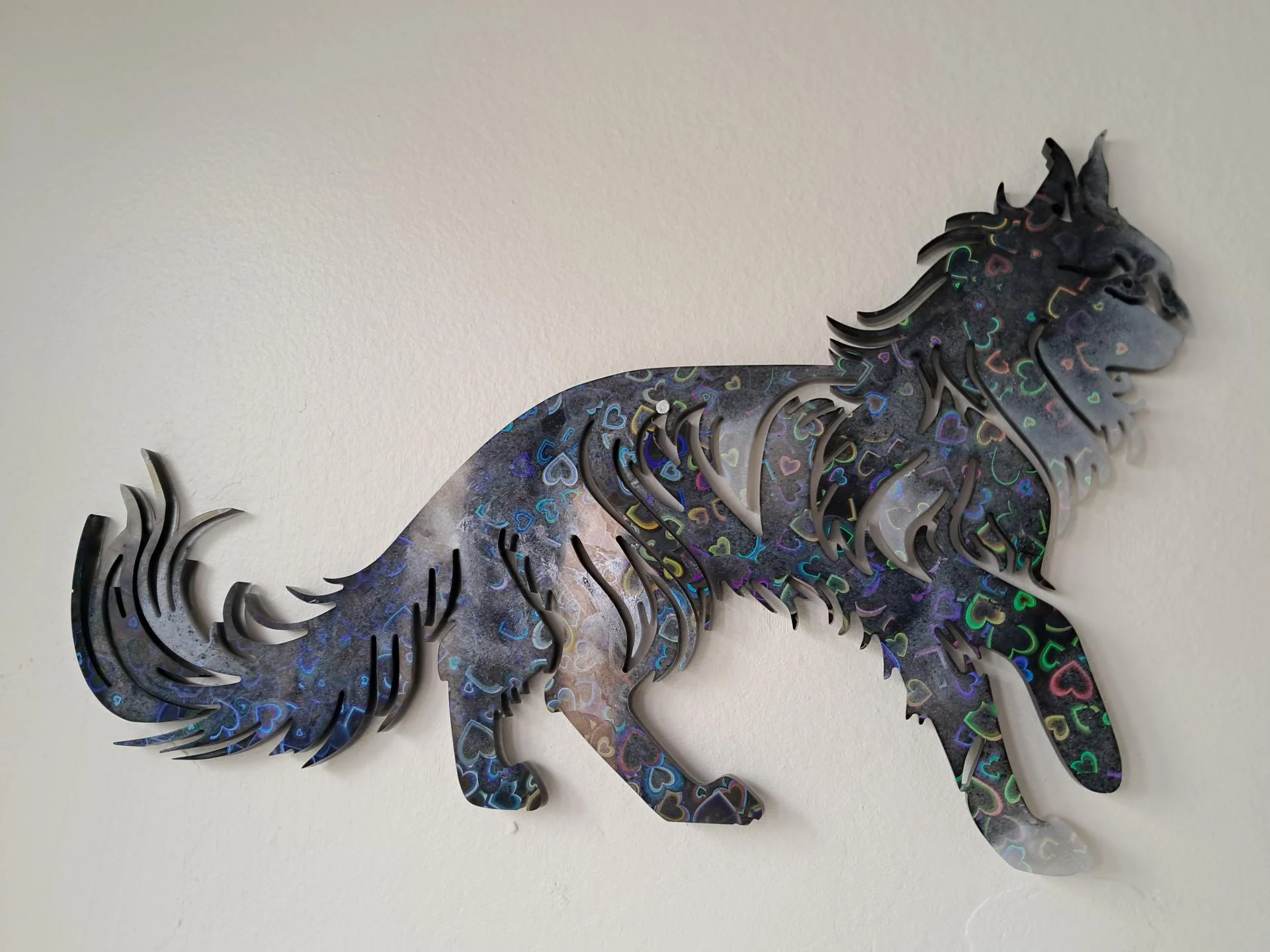 Chat maine-coon holographique, sur commande avec un délai d’environ 1 mois ( 3 semaines de séchage car pièce fine).
